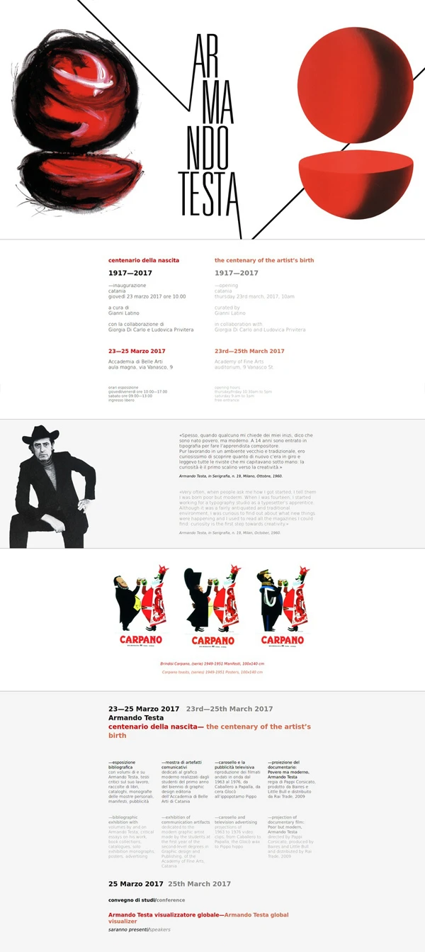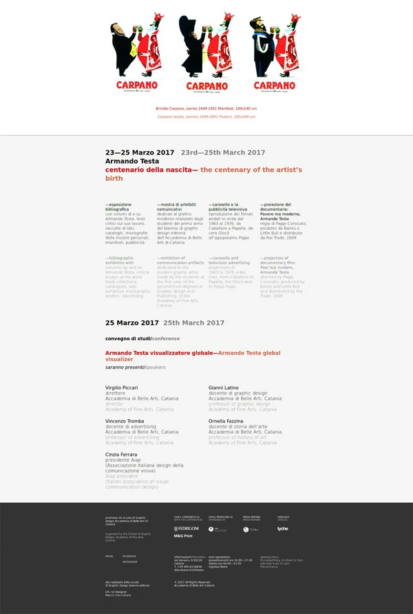 Landing page in occasione del centenario della nascita di Armando Testa tenutosi presso l'Accademia di Belle Arti di Catania.
